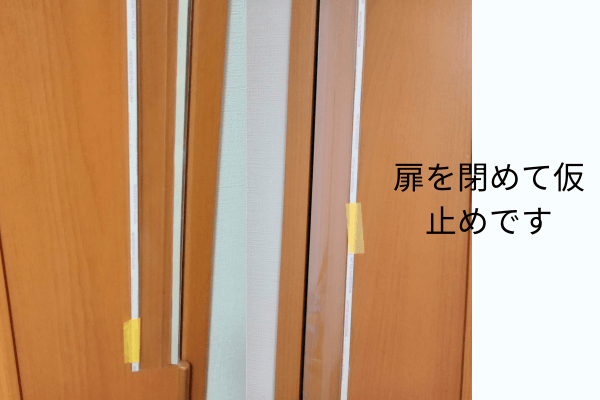 この時に、扉を閉めて「はさまんもす」をドアに密着させ、仮止めをします。