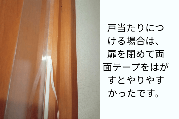 ②戸当たり→ドアを閉めて、両面テープをはがして貼る。